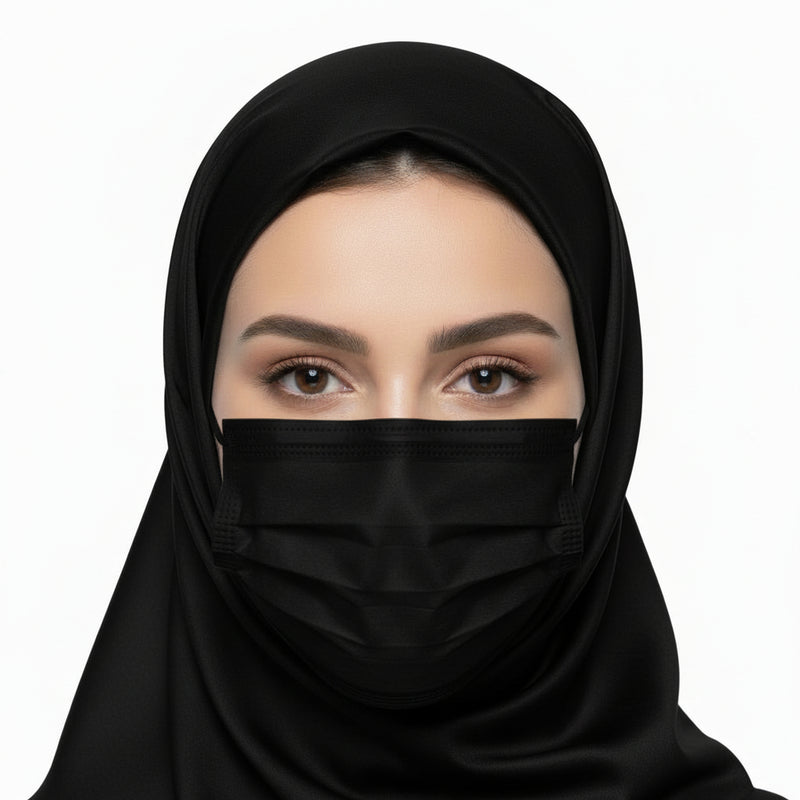قناع الوجه القابل للتصرف Wanwane 3-Ply – أسود، 50 قطعة (حلقة أذن مرنة)