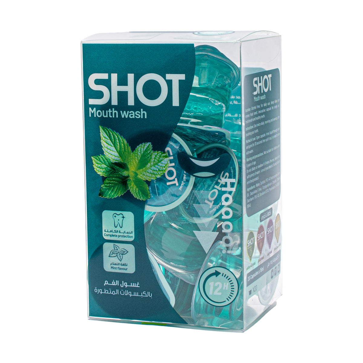 كبسولات غسول الفم شوت بنكهة النعناع - عبوة من 20 كبسولة، سعة كل 15 مل للعناية بالفم