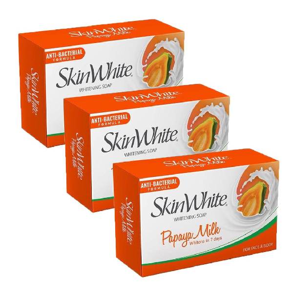 صابونة تبييض البشرة "سكين وايت " 90 جرام، عرض 2+1 مجانًا بنكهة البابايا والحليب