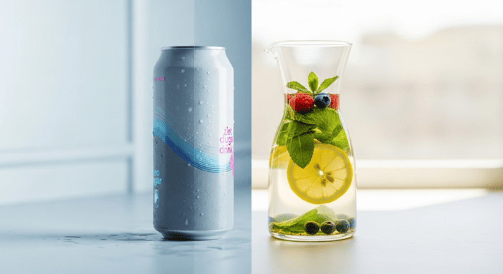يمكن إضافة شرائح من الفواكه مثل الليمون أو البرتقال، أو الخضار مثل الخيار، أو الأعشاب مثل النعناع، للماء، ليصبح لذيذًا ومنعشًا دون سعرات حرارية تُذكر.