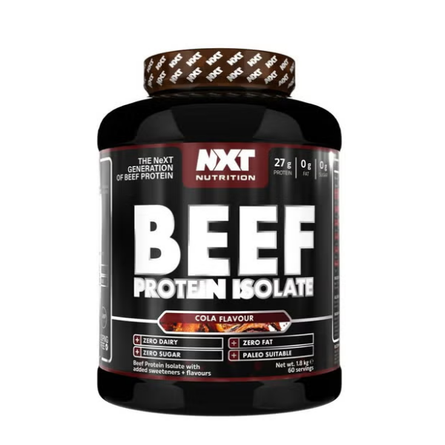 NXT Beef Protein Isolate in classic Cola flavor is a premium dairy-free protein powder crafted from high-quality beef protein. This complete amino acid formula provides nutritional support for active lifestyles and fitness enthusiasts seeking an alternative to traditional whey protein.